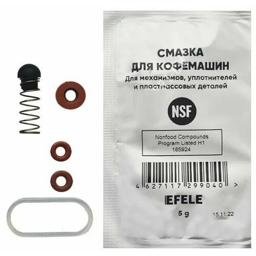 Ремкомплект дренажного клапана нового образца Bosch/Siemens/Nivona/Melitta/Miele В состав ремкомплекта входит: Уплотнитель тефлоновой трубки - 2 шт. Манжета дренажного клапана - 1 шт. Пружинка с клапаном (грибком) -1 шт. Уплотнитель крышки корпуса дренажного клапана - 1 шт. Пищевая силиконовая смазка, саше пакет 5гр - 1 шт. Подходит к моделям кофемашин: Bosch Benvenuto TCA5201 - classic
