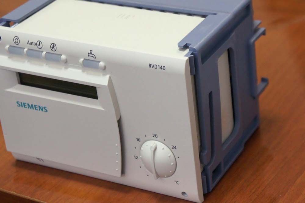 Одним из вариантов подобных устройств является модель контроллера RVD140-C для систем теплоснабжения, работающих от сети электроэнергии и солнечных коллекторов (солнечных батарей или модулей). Устройство имеет 8 режимов программирования, позволяя оптимизировать температуру в сети.