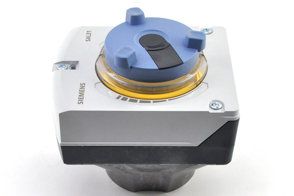 На трех- и четырехходовые поворотные клапаны Сименс могут устанавливаться электрические приводы серий SQK и SAL. Они оснащены защитой от перегрузки и имеют прочный пластиковый корпус, допускается монтаж в любом положении, за исключением «привод вниз». Рабочее напряжение – 24В или 230В.