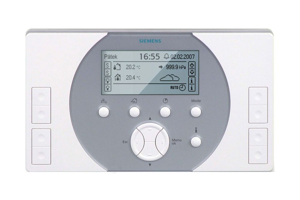 Модуль QAX910 — это главное устройство, которое управляет всей системой «умного дома». Он осуществляет выбор общего рабочего режима отопления, освещения, вентиляции. Обеспечивает отображение на дисплее всех полученных от датчиков данных.