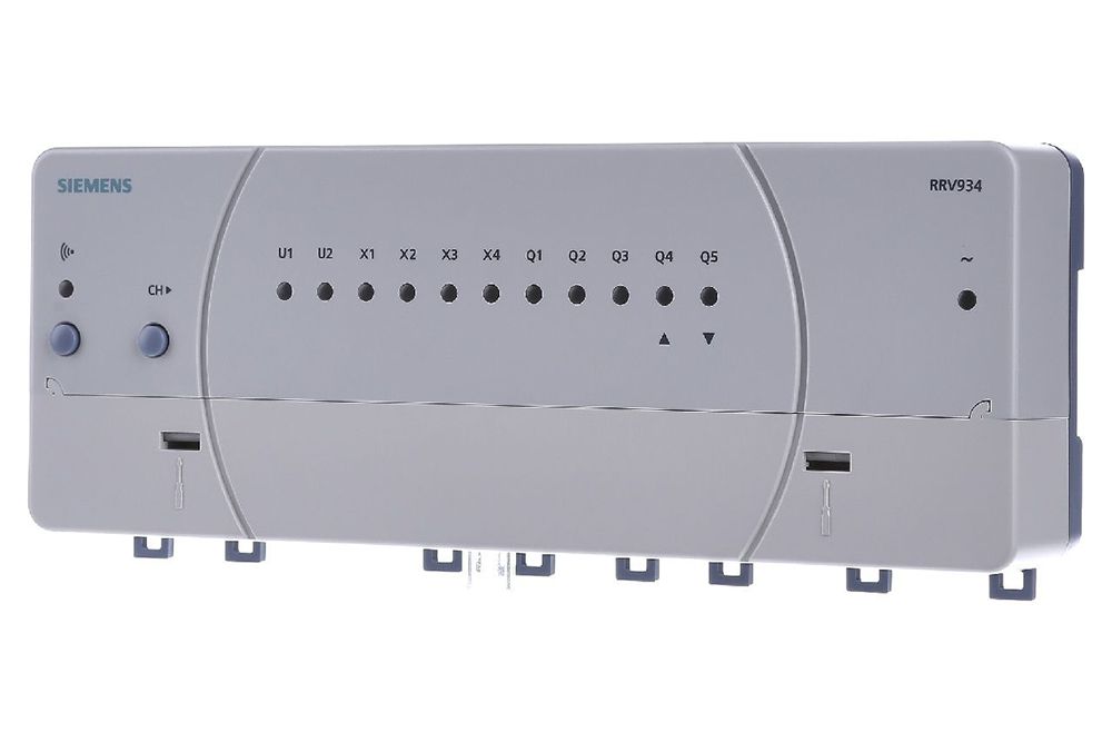Контроллер контуров отопления RRV91. Применяется в системах с центральными потребителями тепла для управления контуром отопления с двух- или трехпозиционным клапаном, или с радиаторными моторными клапанами. Связь с центральным модулем — по радиоканалу.