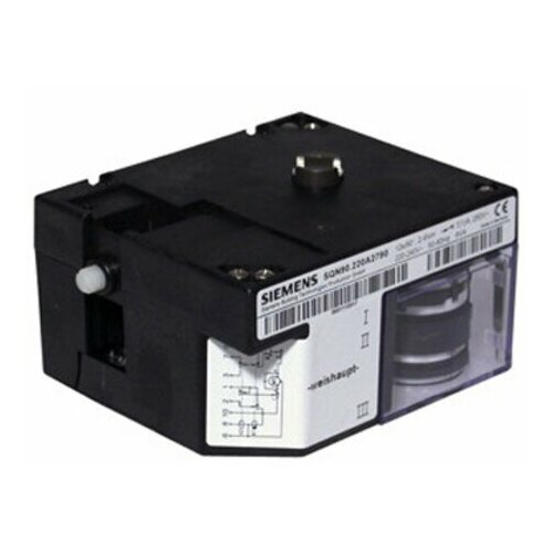 Электрический привод Siemens SQN90.220A2799 используется для вращения воздушных заслонок горелочных устройств контролируя точное соотношение воздушной смеси и сжигаемого топлива.