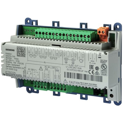 Системы для автоматизации зданий RXM39.1 | S55376-C105 SIEMENS Модуль вх/вых с коммуникацией KNX PL-Link для использования с контроллерами PXC3. E7. Шина KNX PL-Link Управление вентилятором (ECM, DC 0.10 В) Управление приводом клапана DC 0.10 В Управление нагревателем DC 0.10 В Релейные выходы Винтовые разъёмные клеммыОборудование сименс RXM39.1.